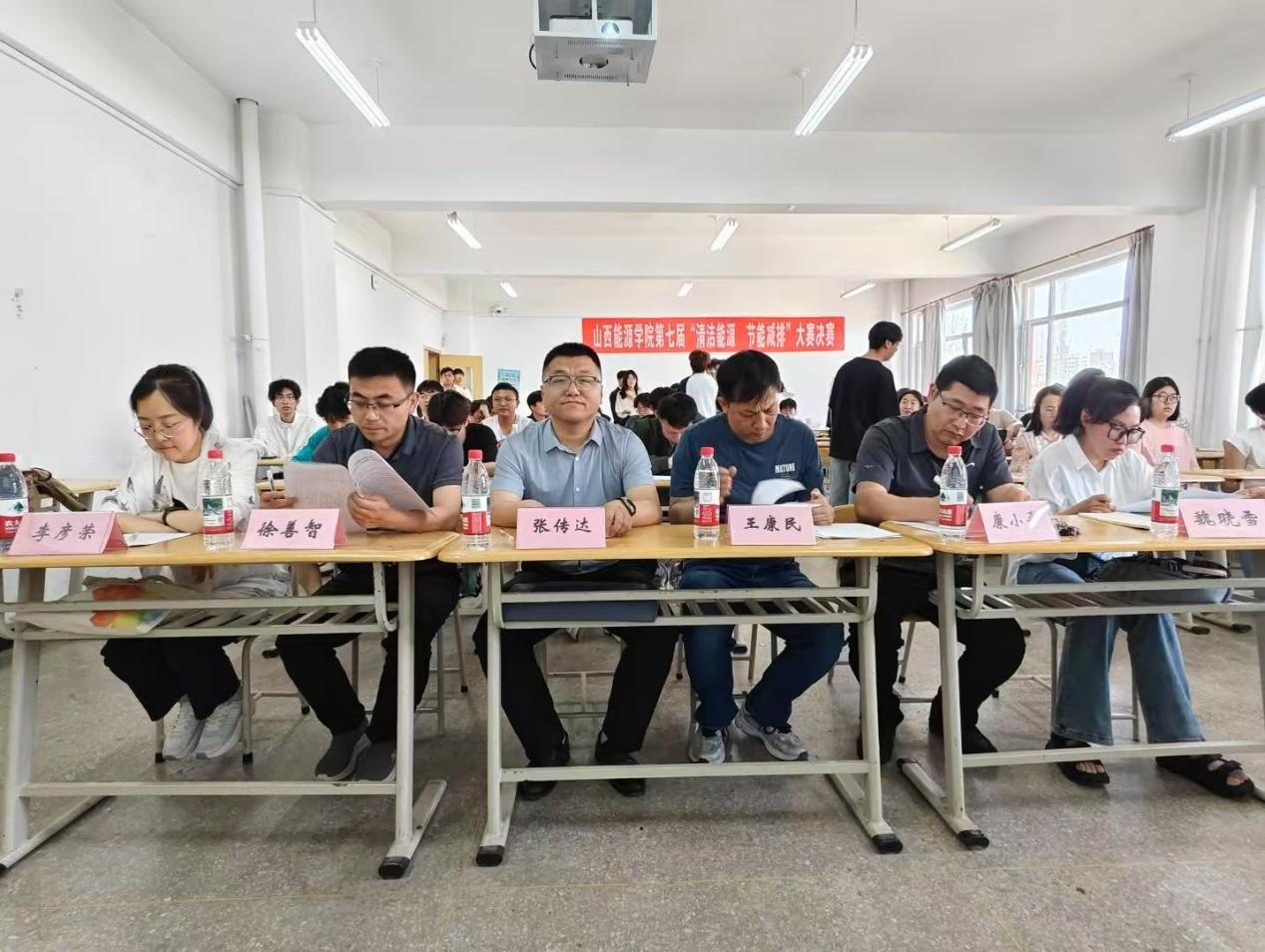 本届大赛决赛于2025年5月19日14:00在笃学楼1号楼304教室举行。此次大赛由能源与动力工程系副主任张传达主持,莅临决赛的领导及专家分别是beat365英国官网新能源(光伏)产业学院执行院长王康民,中国国际大学生创新大赛山西省省赛评委康小平,电气与控制工程系智能控制教研室主任徐善智,新能源科学与工程专业教研室主任李彦荣,资源与环境工程系博士魏晓雪。