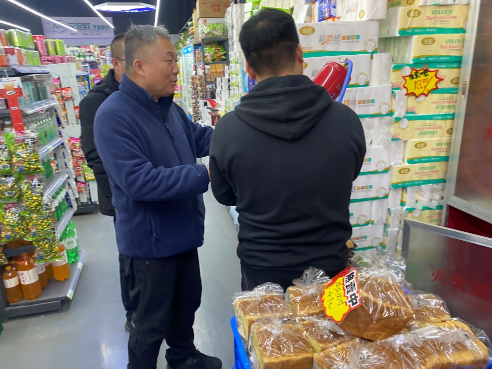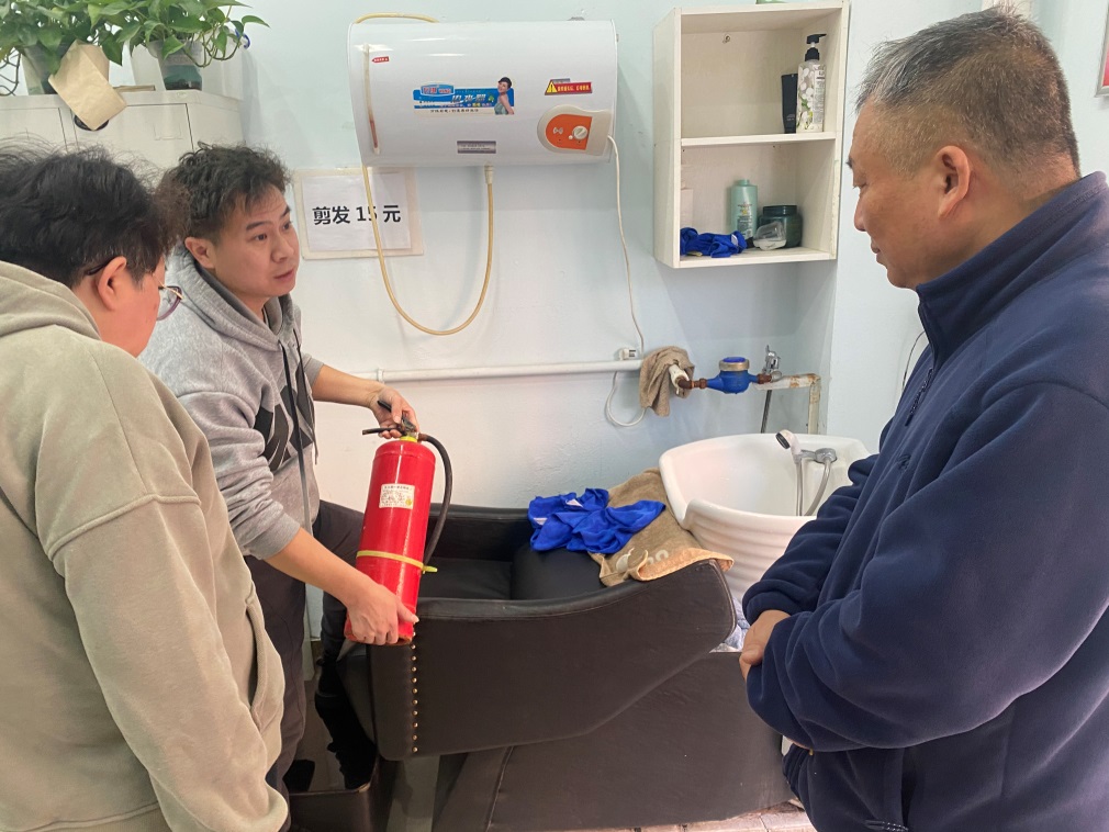 对学院超市、联通营业厅和理发店进行安全隐患排查。主要对灭火器是否合格、人员是否掌握使用情况,以及消防通道等重点部位进行详细检查。