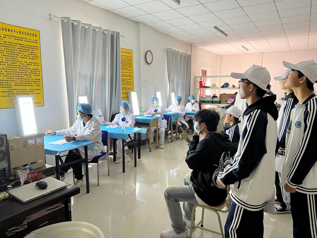 体检期间,校内医疗保健工作正常进行,体检地点定在学校操场进行。卫生所医务人员在体检工作开展前细化体检各项工作流程和细节,做好人员调配工作。提前一天进行场地布置和出入路线模拟,在保证体检区域负荷正常的情况下,尽量缩短同学们的等待时间,提高同学们的体检满意度。