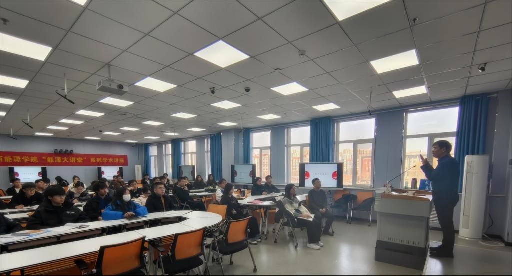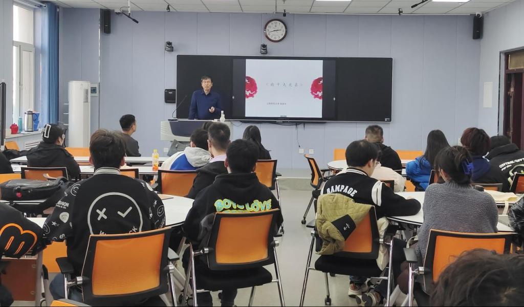 11月28日下午,由科技产业部主办、思想政治理论课教学部承办的“能源大讲堂”系列学术讲座在综合楼306智慧教室举行。山西师范大学马克思主义学院教授、博士生导师赵跃先应邀作了题为“红色经典分享:《论十大关系》解读”的学术讲座。讲座由思想政治理论课教学部赵雪照主任主持,学院青马工程全体学员与思政课教师参加讲座。