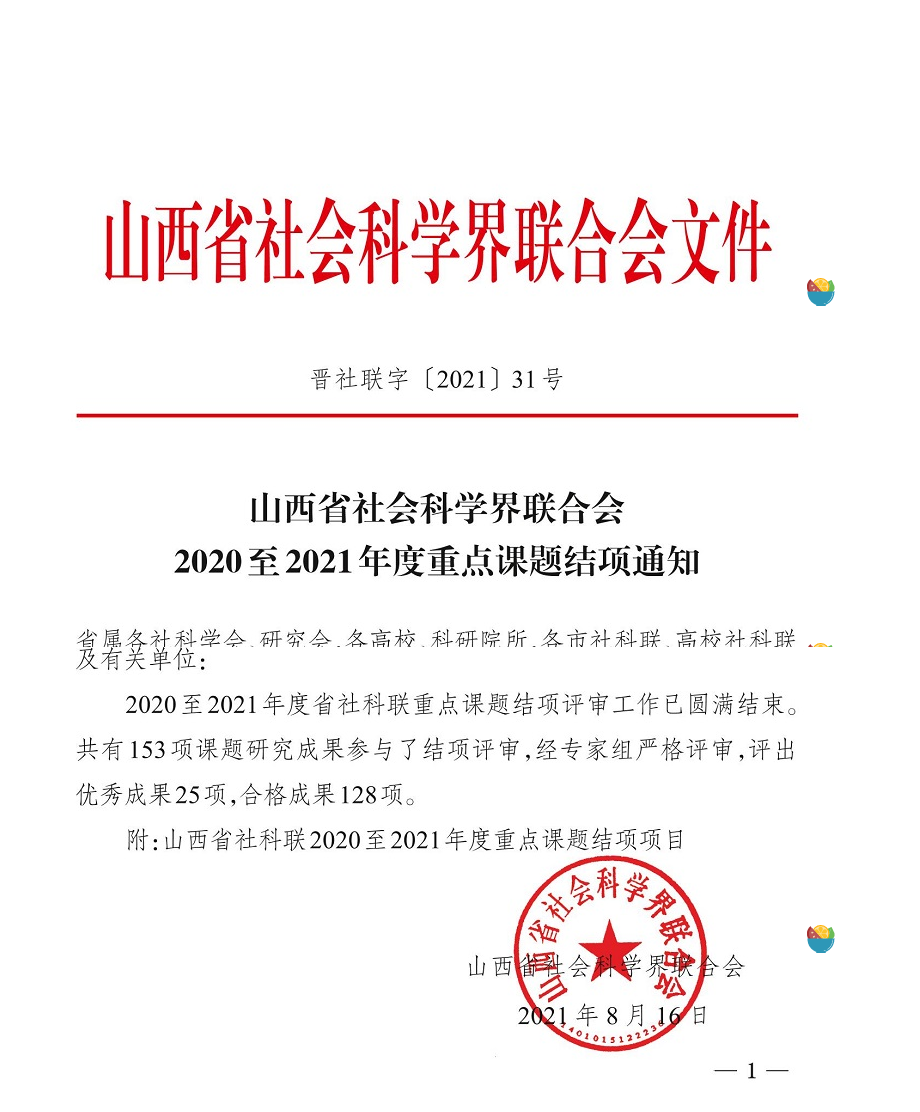 山西省社会科学界联合会 2020至2021年度重点课题结项通知