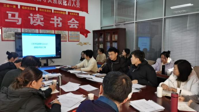 接着,马克思主义基本原理教研室主任李莹、思想道德与法治教研室主任李捷、习近平新时代中国特色社会主义思想教研室负责人崔光磊围绕各自负责课程,从课程目标与定位、师资队伍、课程资源、教学实施、教学效果、课程特色六个方面作了汇报。专家组成员结合课程资料建设情况,一一作了点评,肯定成绩的同时,对存在的问题进行了深入细致地分析,并提出了切实可行的解决办法和建议。