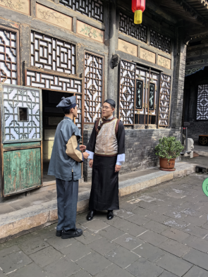在思政部石老师的指导下,学生们化身“思政讲解员”和“历史演绎者”,在平遥古城墙下、日昇昌票号旧址前,生动讲述晋商的发展历程、经营智慧和诚信精神。有的学生结合史料,详细介绍了日昇昌票号如何开创中国银行业的先河;有的则通过情景短剧,再现了晋商“以义制利”“童叟无欺”的商业道德。学生们不仅深入挖掘晋商文化的核心价值,还通过生动的表演,让历史故事更加鲜活。
