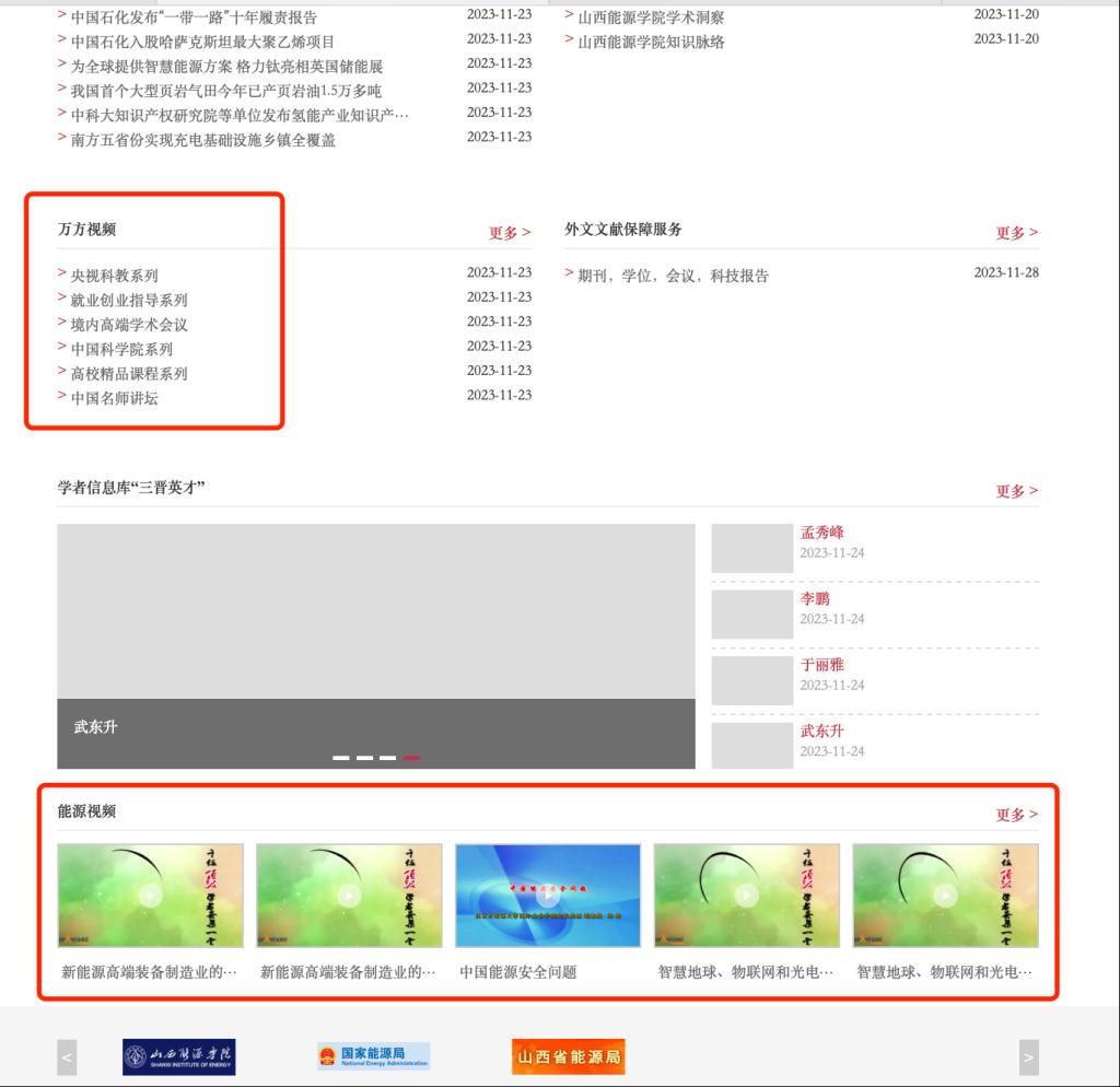 能源行业知识服务平台是一个基于能源相关产业领域的学术资源平台,它包含有能源与环保、采矿工艺、环境科学、资源工程等学科专业的期刊论文、会议论文及硕博论文、博士后出站报告等文献资源;还有资源行业领域的优质视频,包含境内高端学术会议、科学院系列、高校精品课程、中国名师讲坛等系列,生动有声地讲解专业知识点;加入了外文文献保障资源,涵盖了能源行业中的相关学科的外文期刊、外文学位论文、外文会议论文及外文科技报告等。此外,根据我院的学术特色及成果情况,增加了学术知识脉络。