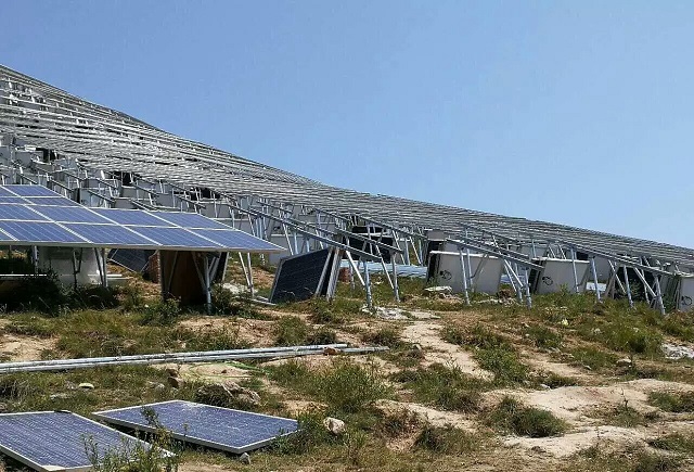 实践团成员来到了位于山顶处的光伏发电设备处,发电处工作人员认真细致的讲解了光伏发电的一系列设备运行。同学们了解后得知,光伏发电站是一个全国性的项目,生成的电主要发往北京、上海等一线城市,目前还处在一期工程的建设中,日发电量能达到8-9万伏,待建成后整个发电站共为全国输送用电可达到80万伏。同时,同学们了解到此次新建成的发电站运用了国家许多新的发明技术,如新式逆变器,可将光能产生的电能由30V转化到500V最终达到35000V,机械化程度极高,处于国内领先水平。同学们还专门为这个小旋钮照了一个特写。从工作人员那里了解到,这么小的一个旋钮,可在夏天和冬天通过调整,能够大大得提高光能转化效率,是个十分神奇的小旋钮。