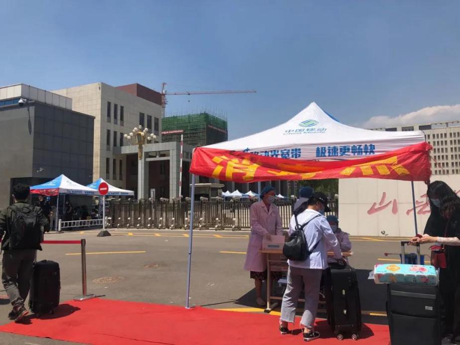 学院南门外设立了很多帐篷