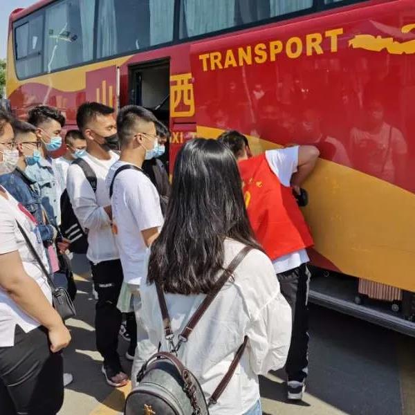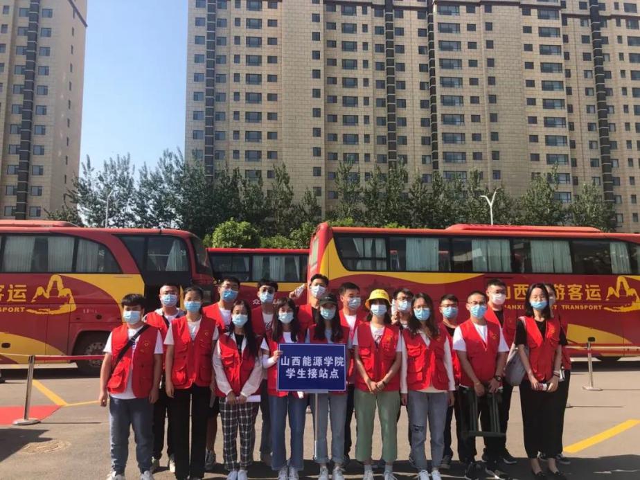志愿者们在校门口迎接大三学子