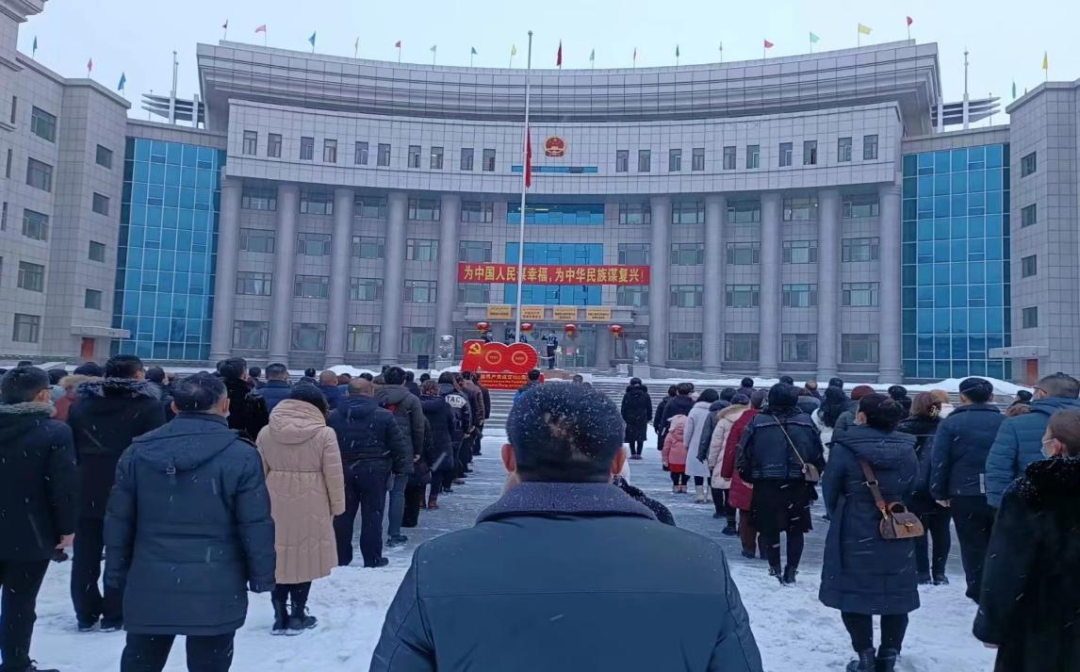 领导干部冒着大雪升国旗!让我们每个人心中的爱国情怀油然而生!