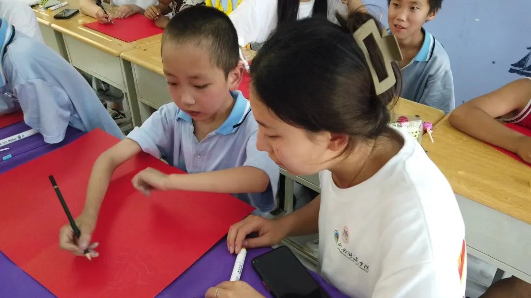 在课堂的间隙时间,队员们与小朋友们敞开心扉交流,进行心理上的引导与帮助,鼓励小朋友们要从小树立远大理想,积极对待生活,好好学习,做一个正直、善良、勇敢的人。