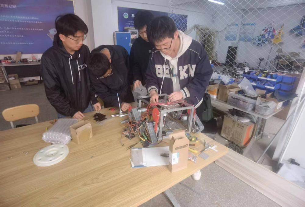 在制作此作品时,不仅要对产品功能进行了确认,还要进一步确认了产品的基本结构、技术参数以及产品外购件和标准件,然后使用SolidWorks等对产品进行方案图的设计。在此比赛期间,他们在3号楼机器人创新实验室奋力拼搏,在一次又一次的调试中不断完善着自己的作品。所有成绩的取得,无不源于点滴日常的努力;所有事业的突破,无不得益于积年累月的奋斗。青春逢盛世 奋斗正当时,下面便是他们为了心之所向而不辞辛劳的模样。