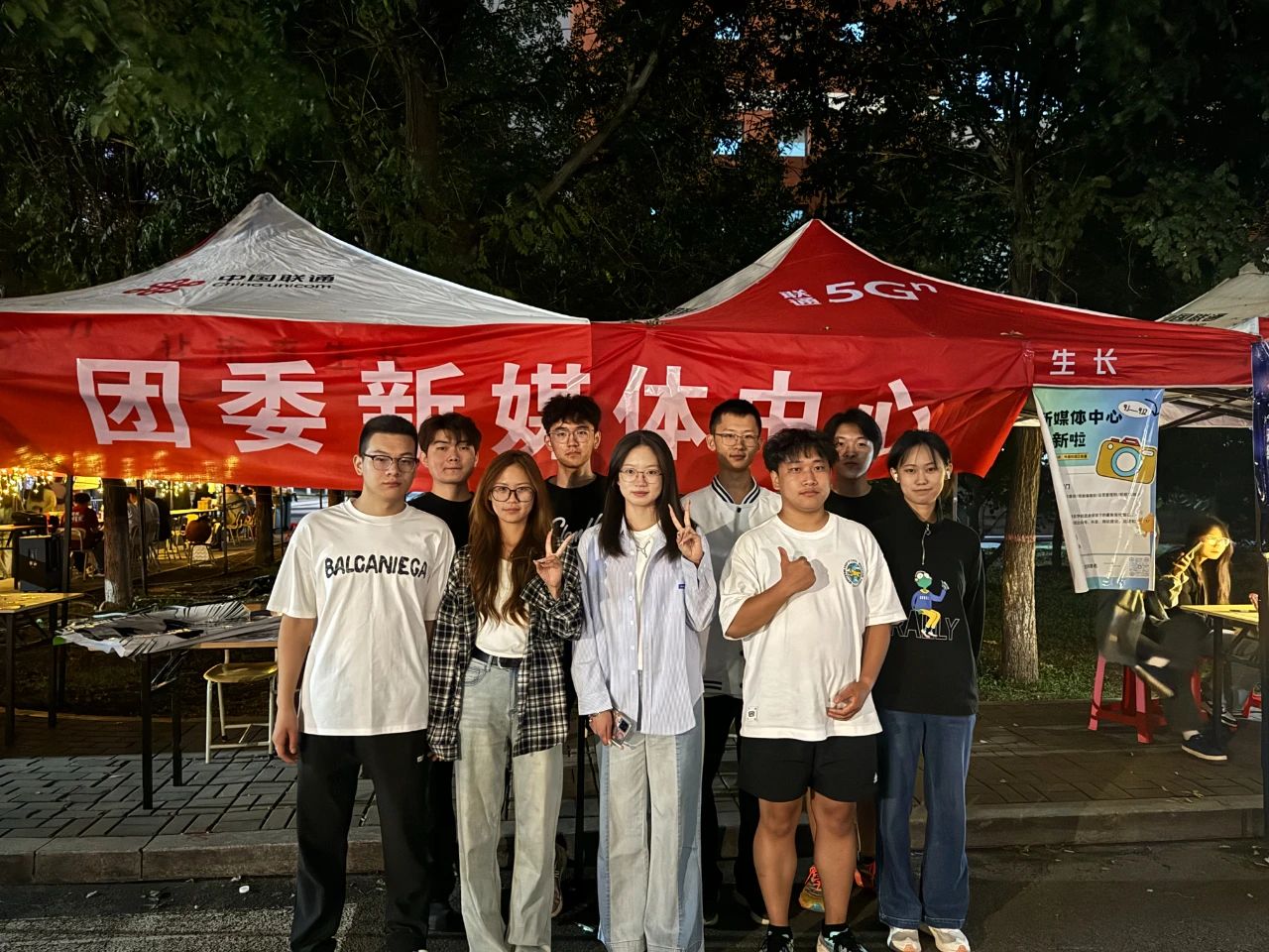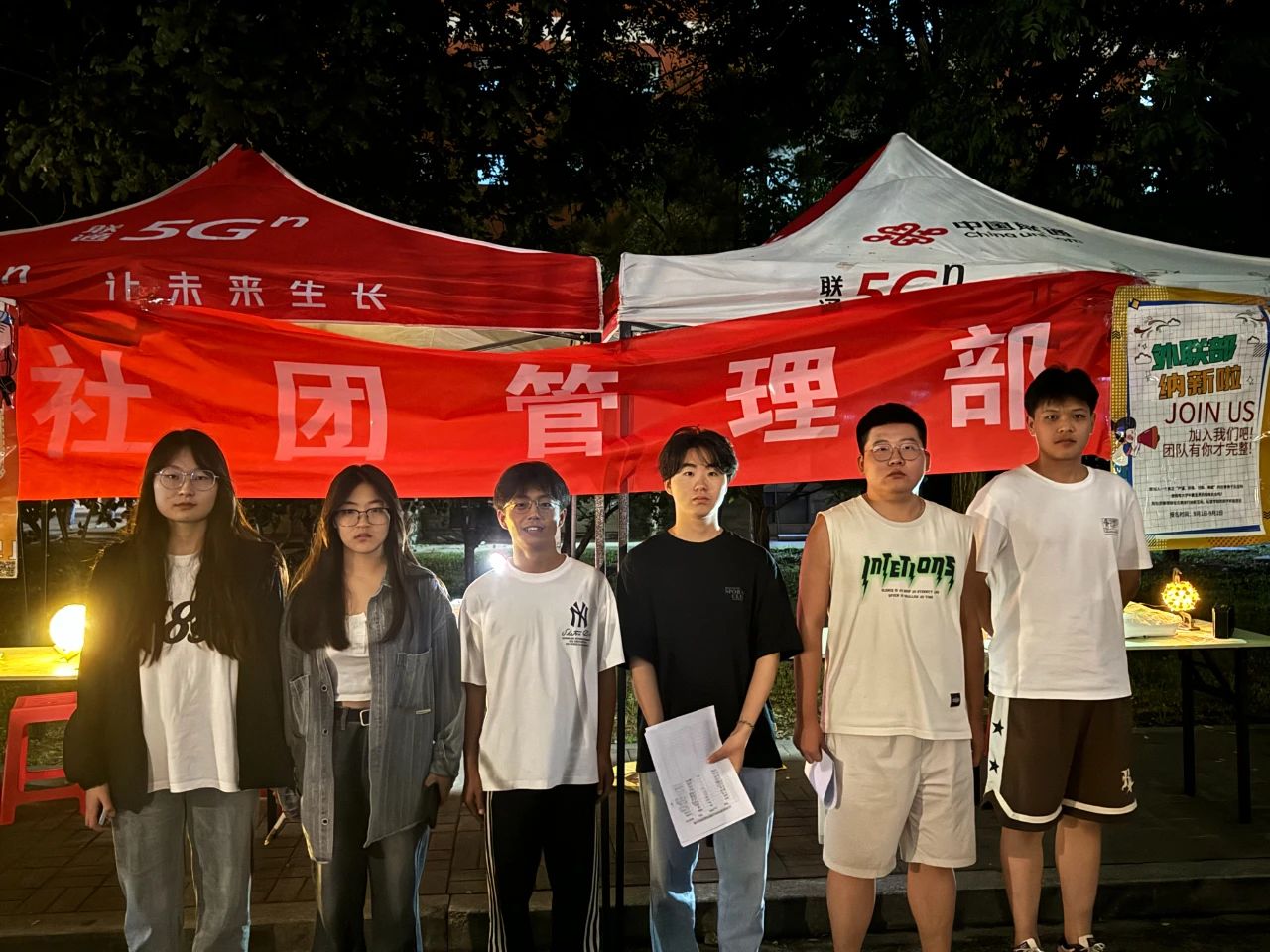 夜幕降临,伴随音乐,彩灯闪烁,各部门尽展风采,吸引新同学前来加入与感受校团委的温暖氛围。