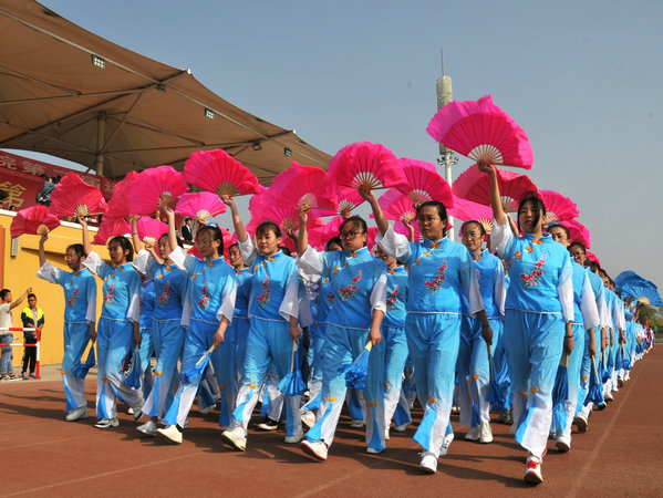 各代表队退场后,八个系部的表演以及院团委青春朝气的大型团体操将现场气氛推向高潮。表演结束后,运动会各项比赛正式开始。运动场上,健儿们顽强拼搏,奋勇争先,呈现了beat365英国官网师生积极向上的精神风貌。