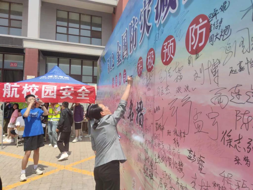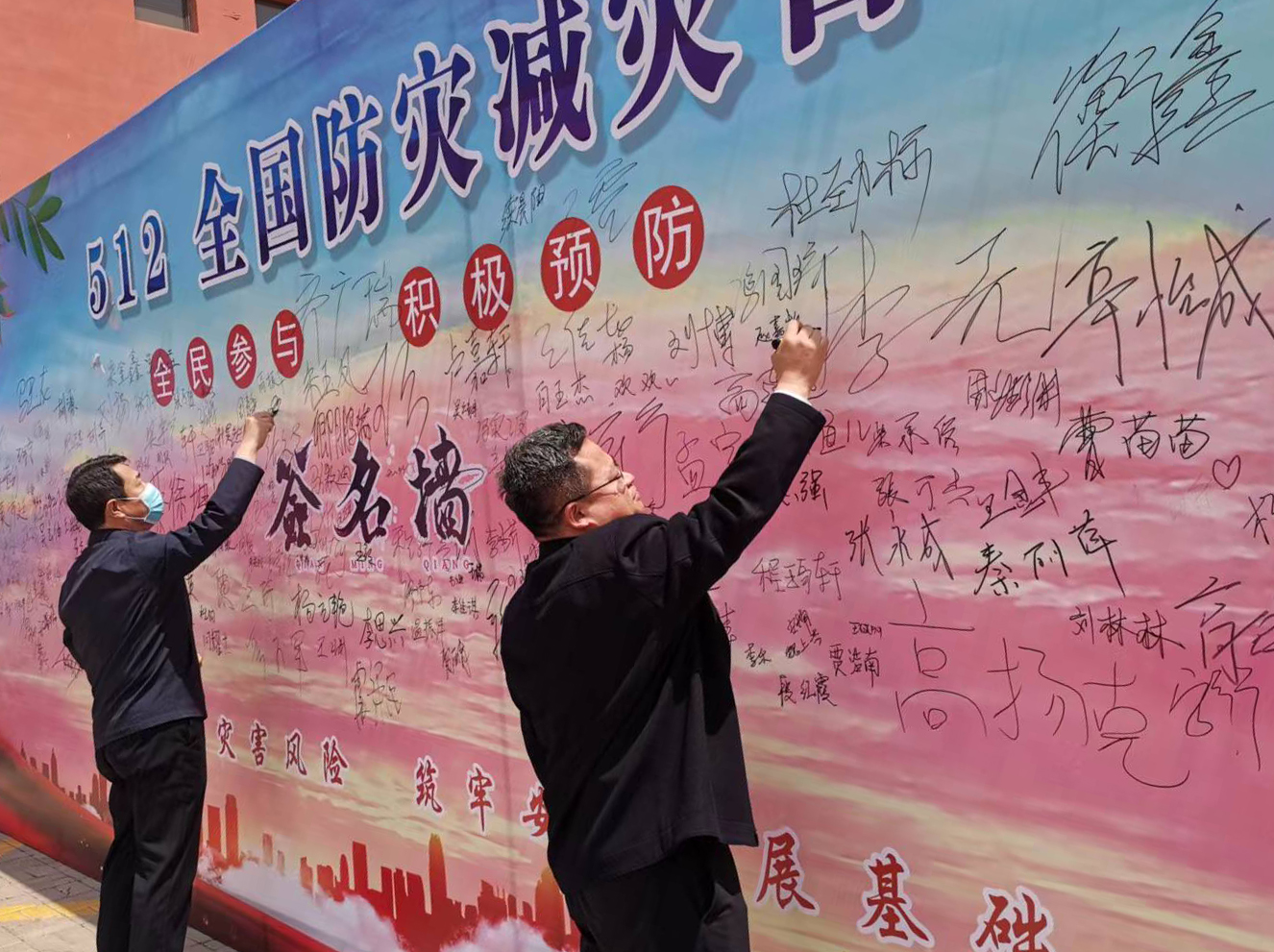活动现场同学们踊跃参与,并在横幅上签下自己的名字。同时向同学们宣传普及“全国防灾减灾日”的由来、设立的意义以及地震、火灾、洪水、沙尘暴等自然灾害的防范措施,号召全体学生提高危险防范意识,时刻加强安全意识,努力增强自我防范能力,以及应对突发灾害事件的应急处理能力。