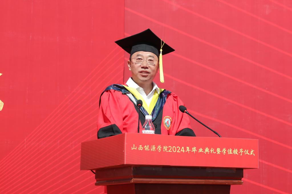 冯院长诚恳地对毕业生提出几点人生建议。一是秉持家国情怀,做堪当民族复兴重任的奋斗者。以黄文秀、申怡飞、刘明侦等优秀人才为榜样,在推进强国建设、民族复兴伟业中展现青春作为,彰显青春风采,贡献青春力量。二是锤炼青春本领,做推动能源产业建设发展的接班人。心怀祖国,心系能源,把个人发展与能源革命的新使命融合起来,在未来的学习和工作岗位上勇挑重担,用实际行动诠释我们能源学子的担当作为。三是永葆赤子之心,做中华优秀传统文化的守护者和传承者。要在以开放的姿态学习了解人类文明成果的同时,更加深入学习了解我们的历史和文化,坚定文化自信,赓续历史文脉,自觉做中华优秀传统文化的守护者、传承者和弘扬者。