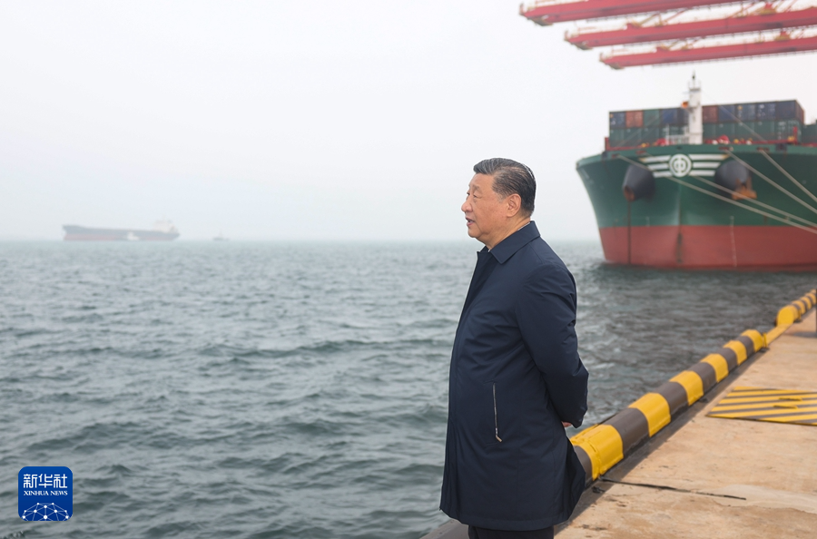 22日下午,习近平首先来到日照港考察。日照港是重要的能源和大宗原材料中转基地,近年来推进智慧化、绿色化建设,建成顺岸开放式全自动化集装箱码头。习近平听取山东省港口发展建设和日照港规划布局等情况介绍,并察看全自动化集装箱码头作业场景。他说,日照港是改革开放后新建的港口,近年来推进科技创新,将传统港口改造升级为现代化港口,不仅货物吞吐量跻身全国前列,还积累了通过传统产业改造升级发展新质生产力的经验,值得肯定。习近平亲切慰问港口科技工作者、运营人员、航运人员,希望大家再接再厉、继续奋斗,推动日照港管理运营更上一层楼。