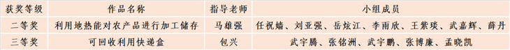 近日,第三届全国大学生可再生能源科技竞赛决赛在沈阳工业大学举行,经过线上分组答辩和答辩委员会综合评议,我系参赛学生表现优异,由马雄强老师指导的任祝嫱团队获得二等奖,由包兴老师指导的武宇腾团队获得三等奖。