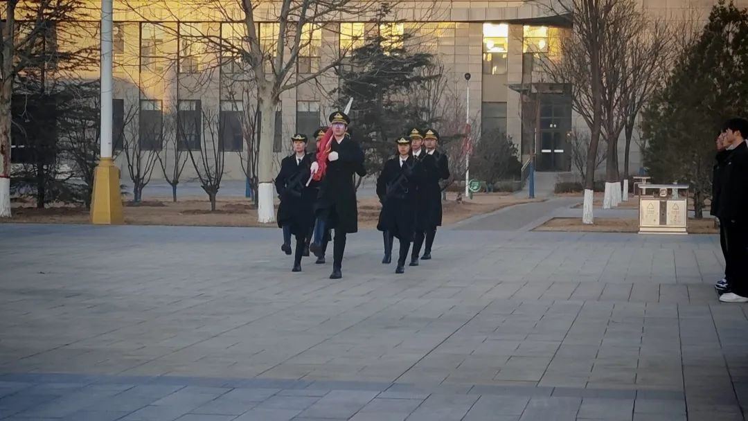 《义勇军进行曲》奏响,升旗手将国旗奋力扬起,五星红旗缓缓上升,全体师生庄重地行注目礼,现场满是敬意。