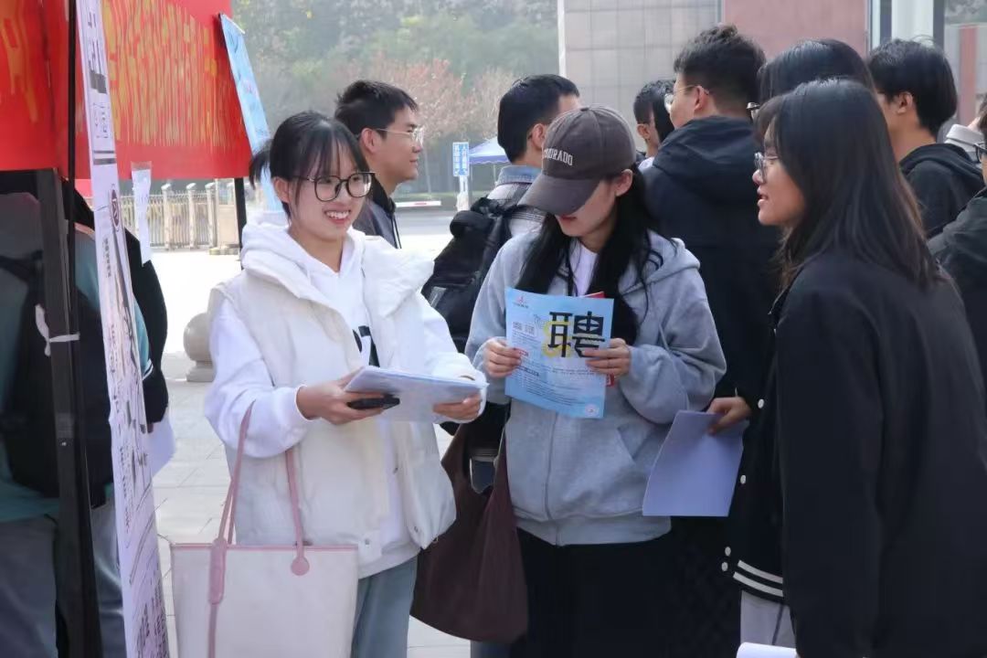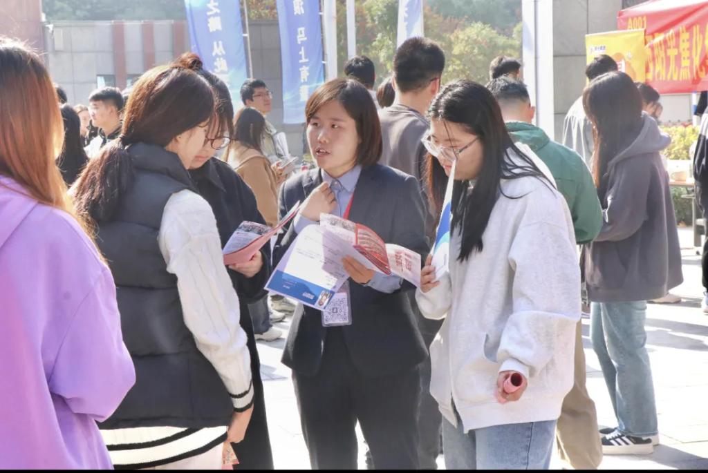 毕业班辅导员讲到:“今年的学院秋季双选会组织有序,涵盖专业齐全,为学生提供与各单位面对面深入沟通的机会,希望我们的学生都能把握机会,找到自己心仪的工作岗位。”