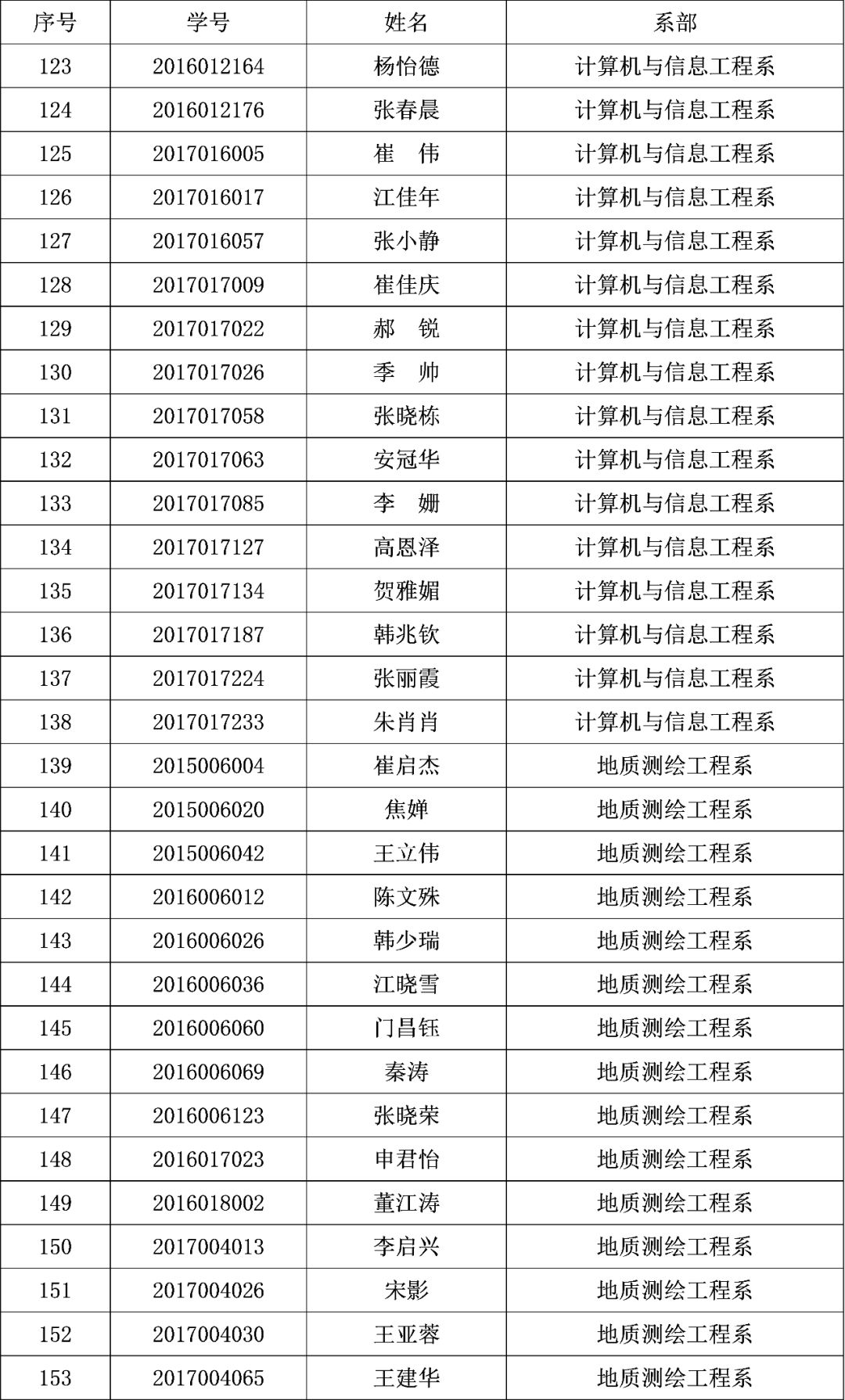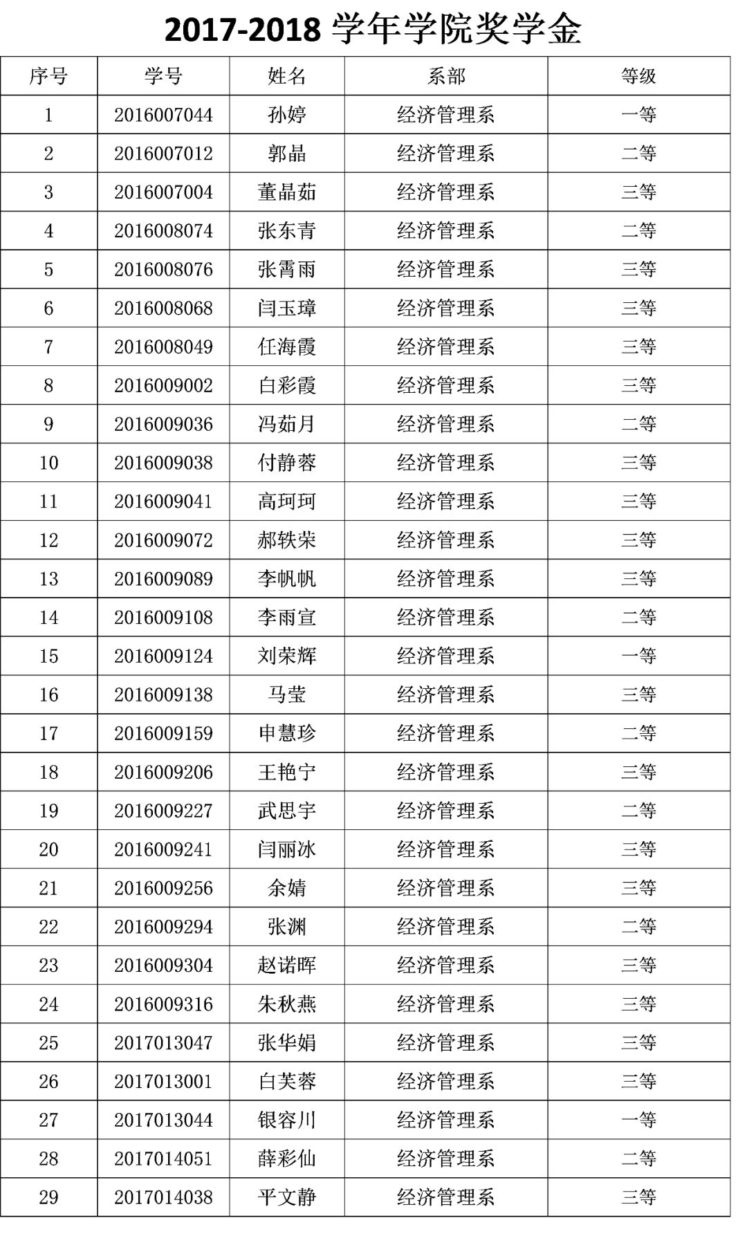 根据《关于提前下达2018年学生资助补助经费(高等教育)预算的通知》(晋财教[2017]334号)、《关于下达2018年学生资助补助经费(高等教育第二批)的通知》(晋财教[2018]150号)和《beat365英国官网国家奖学金管理暂行办法》(院学字[2017]79号)以及我院《 关于做好我院2017/2018学年“国家奖学金”“国家励志奖学金”“学院奖学金”评审工作 的通知》,本着“公平、公正、公开、择优”的评选原则,经个人申请,各系初评和学院审核,共评选产生2017-2018学年度“国家励志奖学金”获奖学生215名,“学院奖学金”获奖学生251名,名单附后。