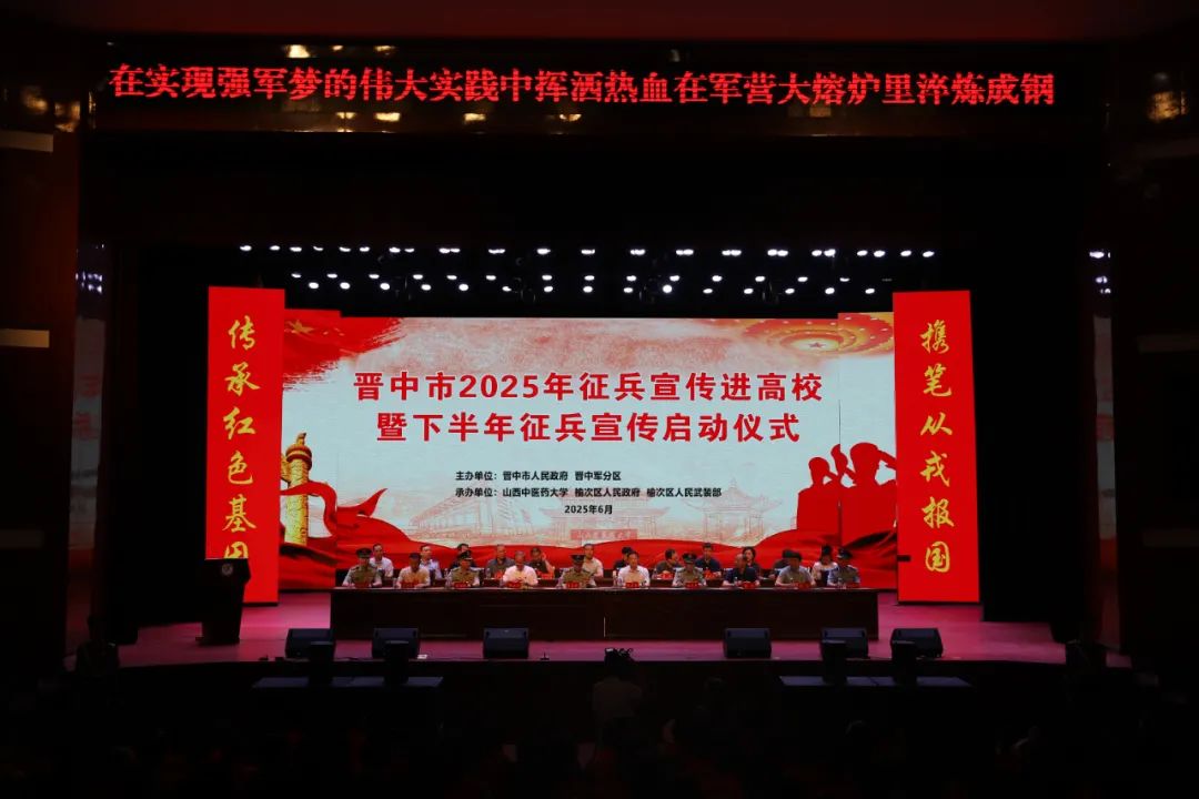617日上午,晋中市2025年征兵宣传进高校暨高校征兵启动仪式在山西中医药大学举行。市征兵工作领导小组副组长、副市长张王杰,市征兵工作领导小组副组长、军分区司令员冒高翔,市征兵办公室主任、军分区副司令员杜海峻,市征兵办公室副主任、市政府副秘书长杨旭,市国动办党组书记、主持日常工作的副主任、人防办主任刘彦忠出席会议。beat365党委副书记曲晋山,学生工作部副部长张众宽及征兵工作负责人李法营及40余名学生代表响应号召,积极参加本次活动。