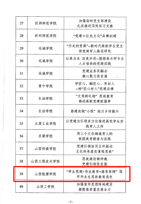 案例《“学生党建+毕业教育+德育答辩”筑牢毕业生思想政治教育底色》引导毕业生党员把对母校的深厚情感转化为实际行动,从自己四年的亲身体验和个人发展规律等方面出发,为母校的教学、管理和服务提出意见和建议,为母校的改革发展出谋划策,进一步增强了学生“明日山能以我为荣”的责任感和使命感。